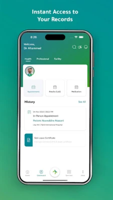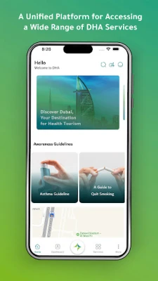 Unohda paperityöt ja monimutkaiset järjestelmät! Nyt kaikki tärkeä terveystietosi on käden ulottuvilla, helposti ja turvallisesti. DHA on luonut kattavan digitaalisen palvelualustan, joka on suunniteltu modernisoimaan terveydenhuoltoasi. Tämä intuitiivinen sovellus tarjoaa sinulle saumattoman pääsyn henkilökohtaisiin terveyspalveluihin, pitäen sinut ajan tasalla omasta hyvinvoinnistasi missä ja milloin tahansa. Se on elämäsi terveyskeskus taskussasi, yksinkertaistettuna ja aina saatavilla.