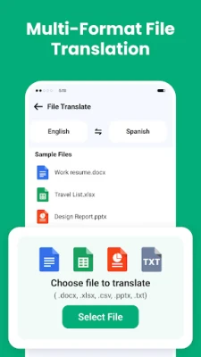 Sovelluksen ytimessä on poikkeuksellinen monipuolisuus ja helppokäyttöisyys. Kuvan kääntötoiminnolla voit napsauttaa valokuvan mistä tahansa tekstistä – olipa kyseessä ravintolan ruokalista, katukyltti tai vieraskielinen dokumentti – ja Easy Translate tunnistaa sekä kääntää sen välittömästi ilman kirjoitusvaivaa. Reaaliaikaiset keskustelut sujuvat vaivattomasti jaetun näytön ansiosta, joka esittää sekä alkuperäisen että käännetyn tekstin rinnakkain. Lisäksi voit hyödyntää puheentunnistusta pikakäännöksiin tai tuoda kokonaisia tiedostoja, kuten DOCX tai PPTX, automaattista kääntämistä varten – ilman kopiointia ja liittämistä. Voit myös kääntää muiden sovellusten näyttösisältöä vaivattomasti yhdellä napautuksella.