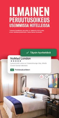 Löydä täydellinen tukikohta matkallesi laajasta valikoimastamme, joka kattaa yli puoli miljoonaa majoituspaikkaa globaalisti. Etsitpä sitten lyhyttä kaupunkilomaa, romanttista viikonloppua, pitkää perhelomaa tai tehokasta liikematkaa, Hotels.com-sovellus tarjoaa vaihtoehtoja jokaiseen tarpeeseen ja budjettiin. Vertaile vaivattomasti hotellien hintoja, luokituksia ja palveluita selkeän työkaluamme avulla. Suunnittele ja järjestele matkasi kaikki yksityiskohdat yhdessä paikassa, tallenna suosikkisi ja jaa ne helposti matkakumppaneidesi kanssa. Nauti mielenrauhasta useimmissa majoituksissa tarjottavan ilmaisen peruutusoikeuden ansiosta.