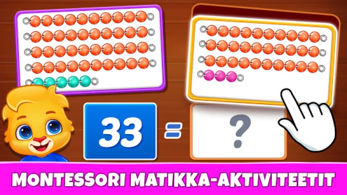 Lasten luontainen uteliaisuus ja innostus tekemällä oppimiseen on pohjana innovatiivisille matematiikkapelimme, jotka muuttavat numeroiden ja peruslaskutoimitusten opiskelun iloiseksi seikkailuksi. Montessori-pedagogiikan periaatteisiin pohjautuvat opetuspelit on suunniteltu huolellisesti tekemään monimutkaisistakin käsitteistä ymmärrettäviä ja hauskoja kaikenikäisille lapsille. Värikäs ja mukaansatempaava ympäristö kutsuu lapsia tutustumaan matematiikan ihmeisiin helposti lähestyttävällä tavalla. Paras uutinen vanhemmille on, että tämä tehokas oppimiskokemus on täysin maksuton.