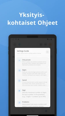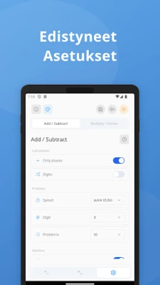 Valmistaudu kisaamaan itsesi kanssa tai harjoittele kuin todellisessa päässälaskukilpailussa ainutlaatuisen kilpailutilan avulla. Seuraa edistymistäsi ja anna äänisignaalien rytmittää matkaasi kohti mestaruutta. Isommalla näytöllä harjoittelu muuttuu entistäkin mukaansatempaavammaksi, sillä tämä ratkaisu on optimoitu erityisesti tablettilaitteille, tarjoten selkeän ja immersiivisen käyttökokemuksen. Se on ihanteellinen kumppani kaikille, jotka haluavat ylläpitää ja kehittää laskutaitojaan päivästä toiseen, tuoden matemaattisen harjoittelun ilon ja tehokkuuden suoraan käden ulottuville.