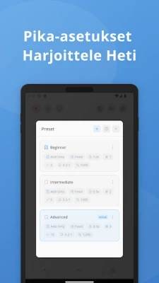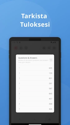 Unohda perinteinen vastausten manuaalinen syöttäminen. Tämä ainutlaatuinen sovellus tekee harjoittelusta saumatonta: katso tehtävää, ja seuraava ilmestyy automaattisesti. Tämä mahdollistaa keskeytymättömän toisto-harjoittelun, joka auttaa rakentamaan vauhtia ja tarkkuutta ennätysajassa. Voit mukauttaa haasteen juuri omalle tasollesi sopivaksi valitsemalla vapaasti numeroiden määrän, laskutoimituksen tyypin ja harjoittelun nopeuden. Visuaalinen mukavuus on taattu tumman ja vaalean tilan ansiosta, mikä optimoi keskittymisen ja vähentää silmien rasitusta pitkienkin harjoitussessioiden aikana.