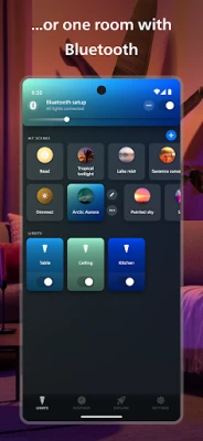Philips Hue -sovellus tekee älyvalaistuksen hallinnasta vaivatonta. Järjestele, ohjaa ja mukauta Philips Hue -valojasi ja -tarvikkeitasi luodaksesi täydellisen tunnelman joka tilanteeseen. Aseta valaistus automaattisesti, luo yksilöllisiä kohtauksia ja synkronoi valot viihteen kanssa. Nauti henkilökohtaisesta ja dynaamisesta valaistuskokemuksesta kotiisi.